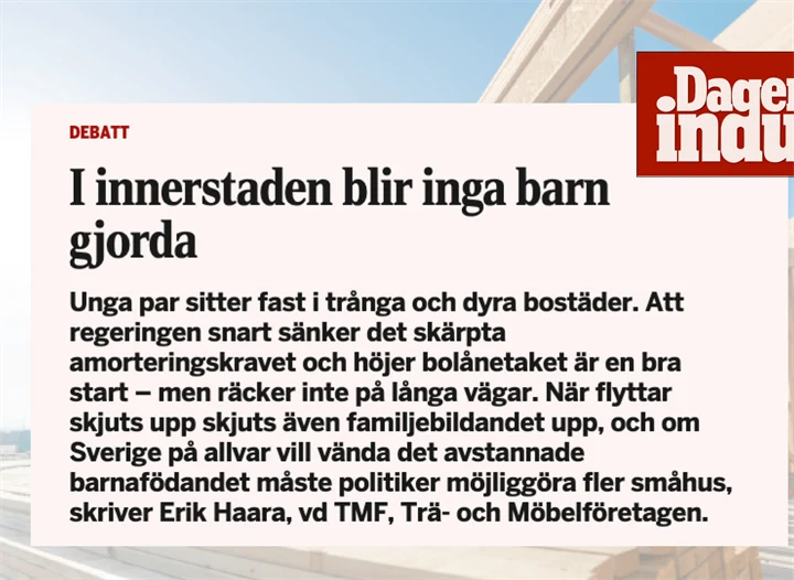 Se hela filmen om egnahemDet är hög tid för en ny egnahemspolitik som skapar långsiktig ekonomisk trygghet för den enskilde och fler möjligheter för hushåll i familjebildande ålder. Nu lanserar TMF 14 förslag för framtidens bostadspolitik.
