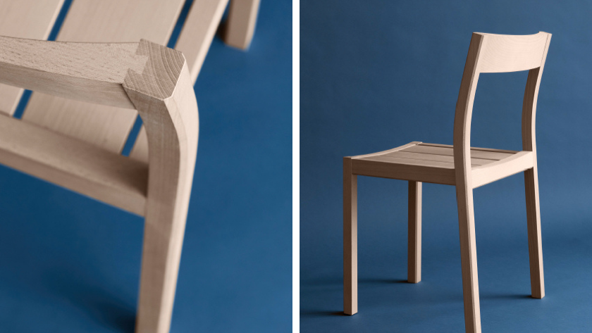 Ronjas design och tillverkning visar på möjligheterna med lokalt virke. Stolen är enkel, okomplicerad och det är träet som står i centrum.