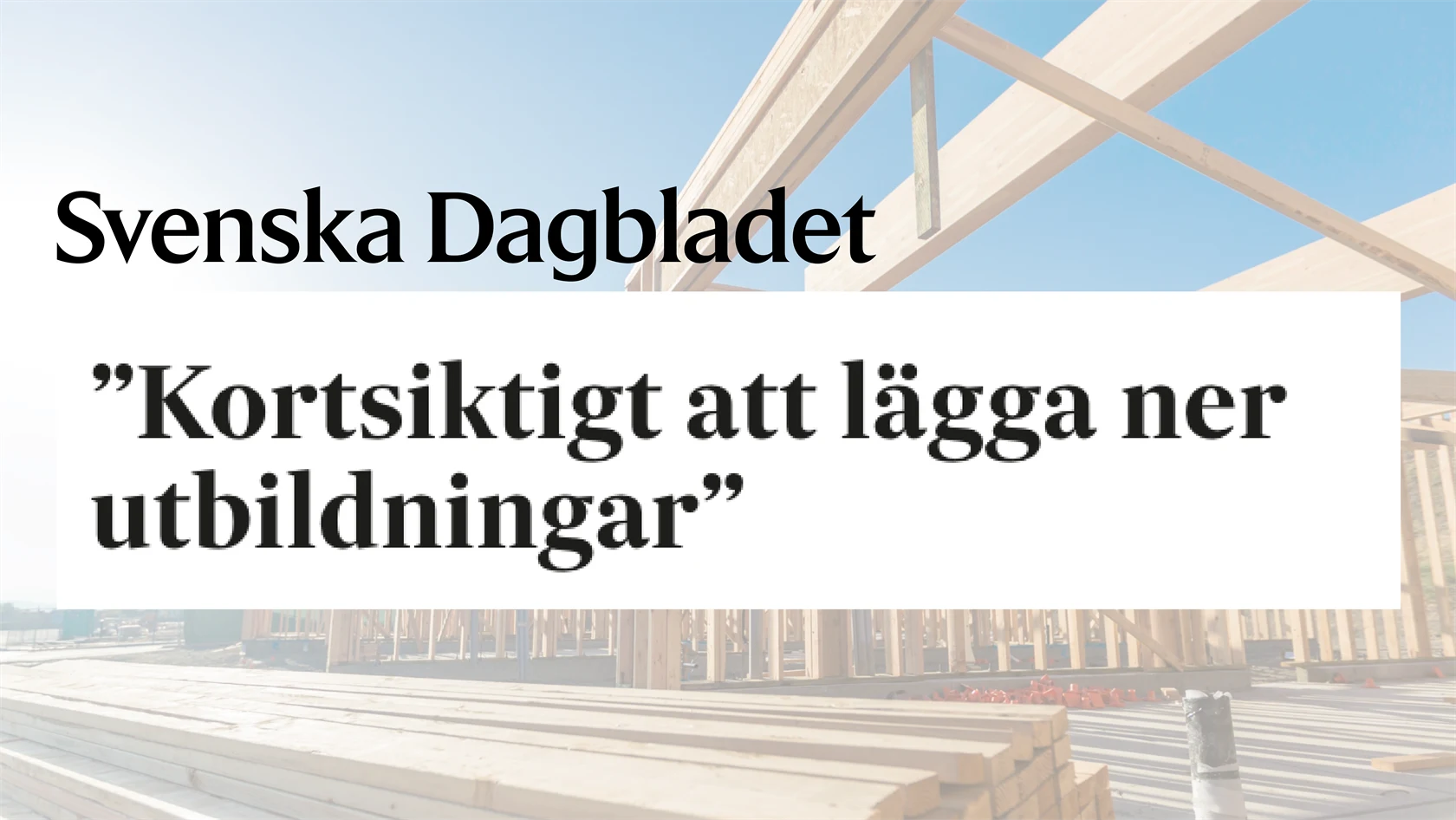Trots att svensk industri behöver anställa 300 000 under kommande år - och att bristen på yrkesutbildad personal väntas öka - väljer många kommuner att lägga ner sina yrkesutbildningar till förmån för kortsiktigt sparande. Senast ut är Nybro kommun och den hotade finsnickeriutbildningen på Åkrahällskolan. Läs TMF och GS-fackets gemensamma debattartikel i SvD om behovet av yrkesutbildningar för industrin.