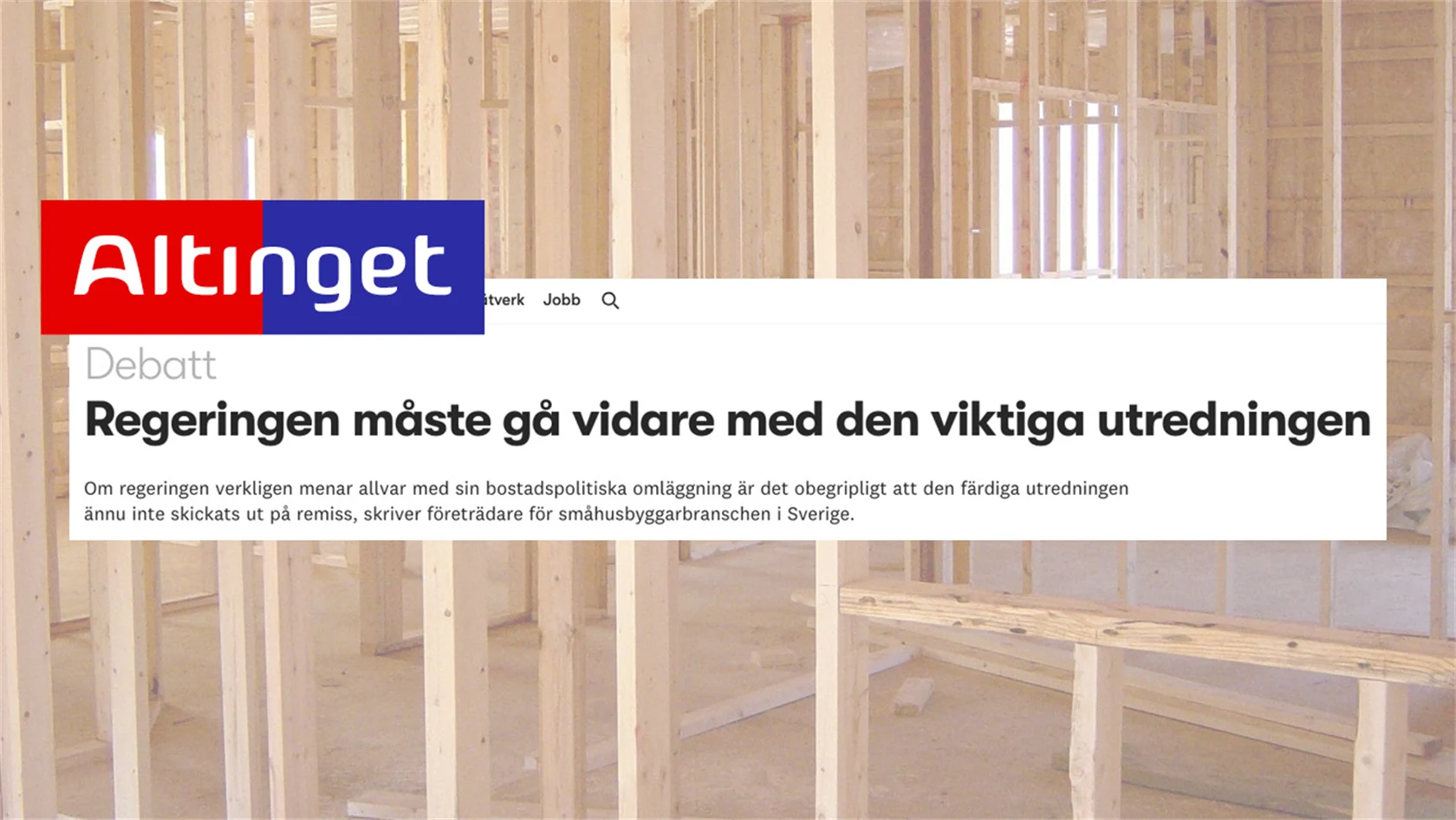 I en gemensam debattartikel på Altinget kräver TMF och styrgruppen för trähus att regeringen och finansmarknadsminister Niklas Wykman (M) i spetsen gör något med den utredning som presenterades för sex månader sedan. Nu har tillräckligt med tid gått, och utredningens förslag om höjt bolånetak och slopat amorteringskrav måste ut på remiss. All fördröjning hotar sysselsättningen och återhämtningen i byggindustrin.