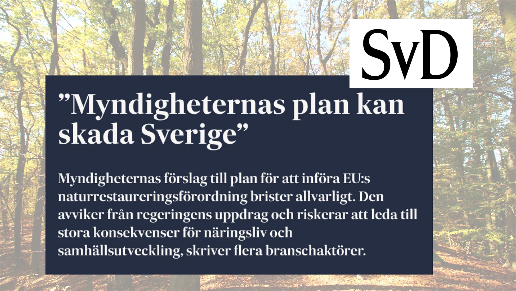 Myndigheternas implementering av EU:s naturrestaureringsförordning riskerar att skada Sverige. Det skriver TMF tillsammans med flera branschföreträdare i Svenska Dagbladet.